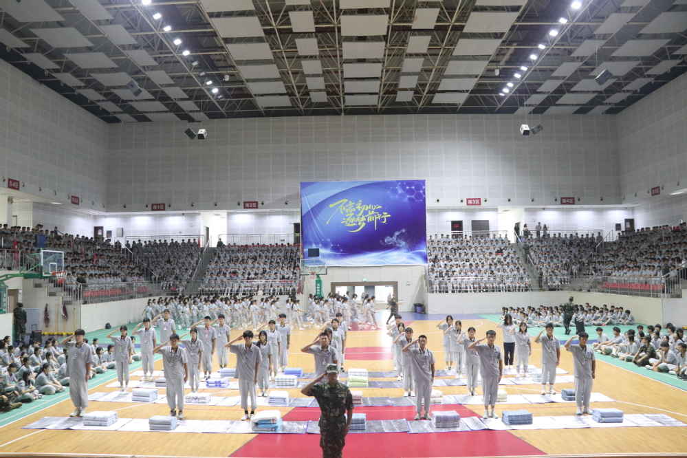 结营仪式上,新生们在教官的指挥下进行了精彩的汇报表演。旗语方阵挥舞旗帜,动作有力;手语操方阵诠释着无声的语言,饱含深情;内务方阵现场展示了规整的内务整理成果,“豆腐块”般的被子、摆放整齐的物品,体现了同学们严谨的生活作风;三声三相方阵队列整齐、口号嘹亮,充分展现了2025级新生饱满的精神状态和坚韧不拔的毅力。