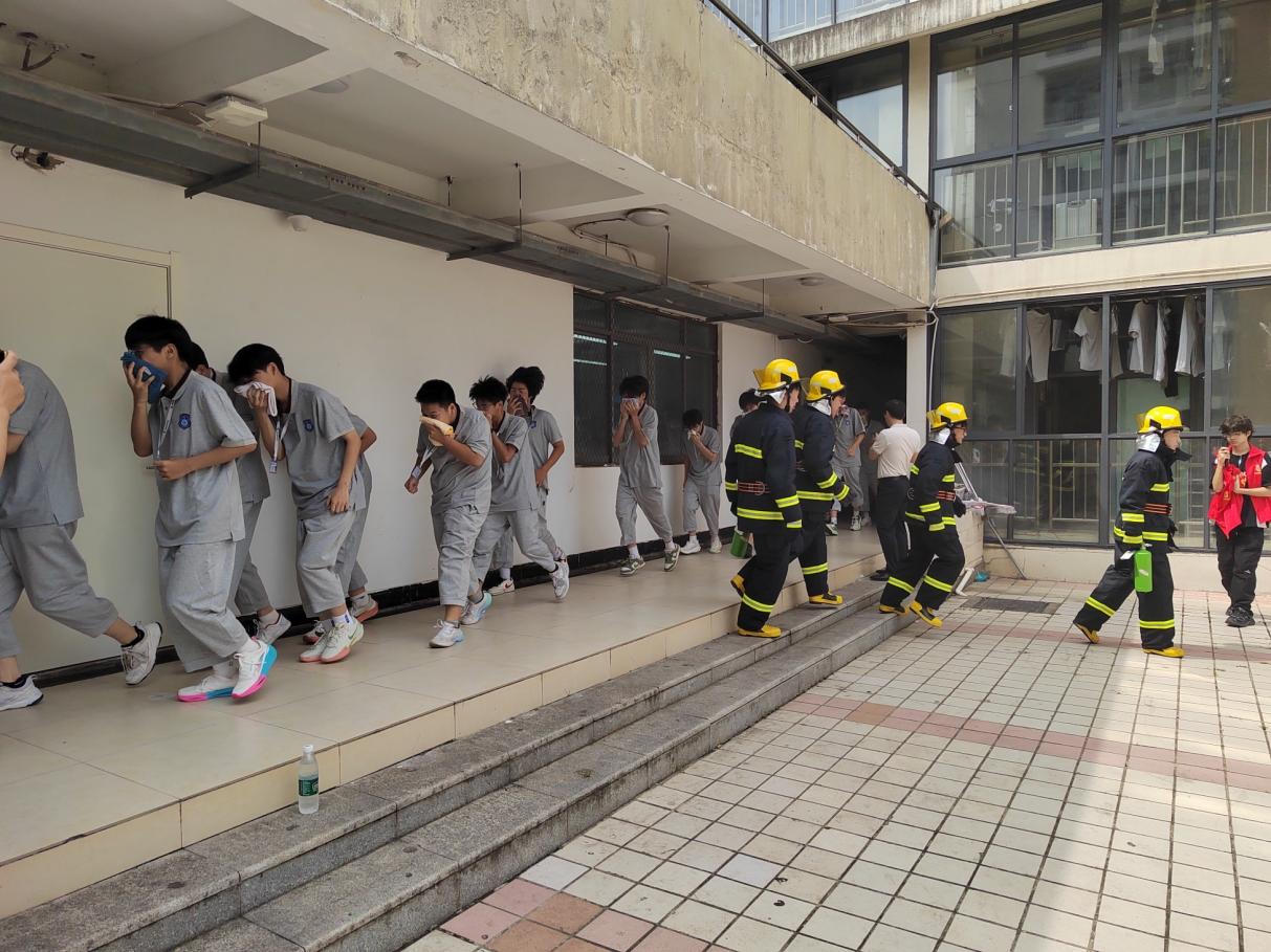 随着阵阵烟幕升起和急促哨声响起,消防应急疏散演练活动在消防教官的指导下,在各点位教工及物业管理员的共同指引下,全体住宿新生按照预定疏散路线,用湿毛巾捂住口鼻,弯腰低姿,快速有序地从学生宿舍楼撤离至指定安全集结区域。整个演练过程紧张而不慌乱,迅速而有序,达到了预期效果。演练结束后,教官立即进行了现场点评,进一步巩固了同学们的应急逃生技能。